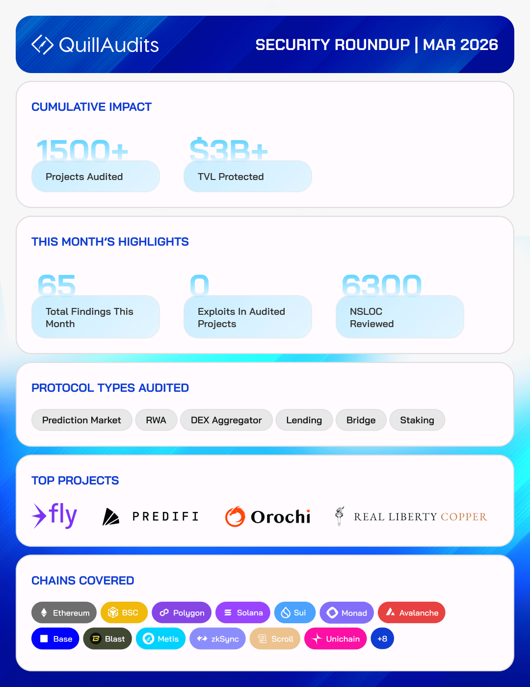 The quarter's pattern is clear: audited protocols are still shipping bugs, and the most damaging attacks increasingly target infrastructure outside the smart contract itself. That's the gap between audited and monitored, and it's where the real damage is happening. That's exactly what QuillAudits On-Chain Monitoring Service fills, real-time threat detection, oracle surveillance, and automated response that catches what audits can't.