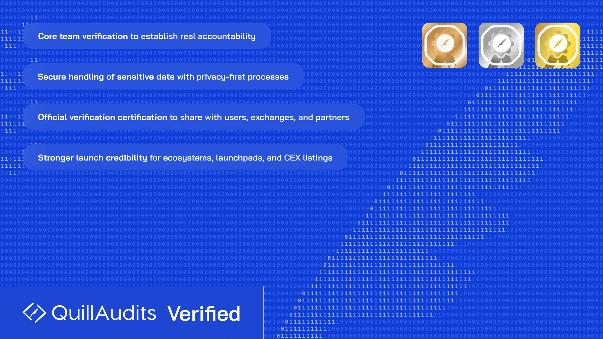 Anonymity is the #1 red flag for investors, exchanges, and ecosystems. QuillAudits Verified gives your team a transparent, shareable certification that builds trust without friction.